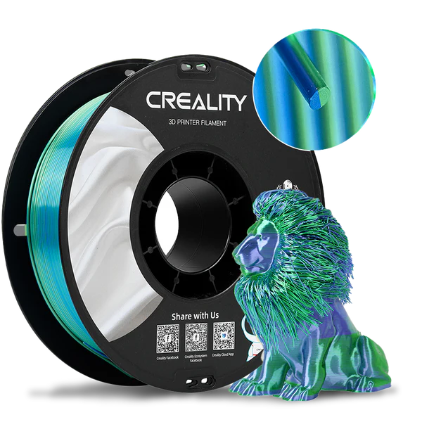 Creality CR-PLA Dual Silk Blue-Green is made with a specially designed formulation to improve gloss and enhance the toughness of the filament.