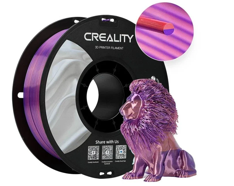 Creality CR-PLA Dual Silk Pink-Purple delivers a glossy finish that really pops. The high gloss silk-like finish of Creality CR-PLA Dual Silk Pink-Purple attracts attention and stands out from other filaments.