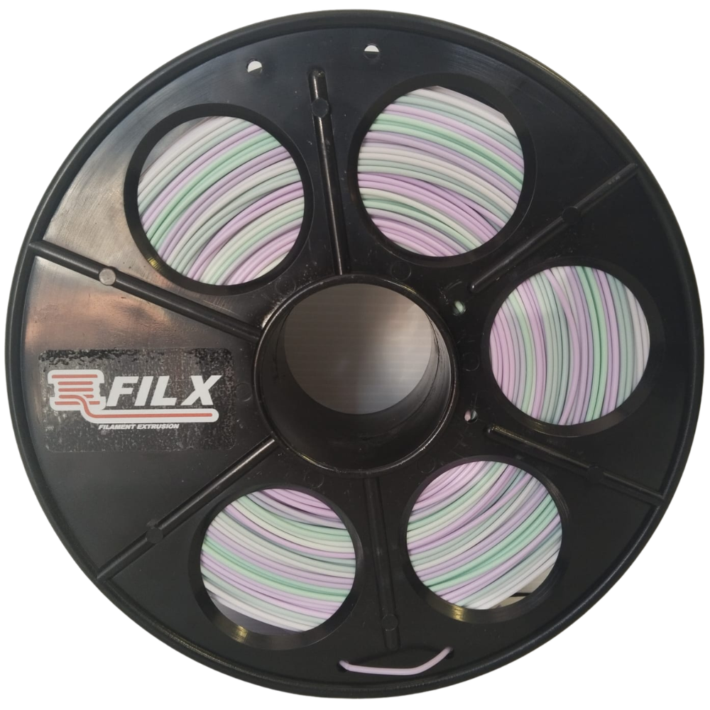 Experience the magic of multi-colour 3D printing with FilX PLA Rainbow Lavender & Lime. Featuring a pure, additive-free composition, this filament ensures virtually odourless printing — now with a stunning colour-shifting twist.